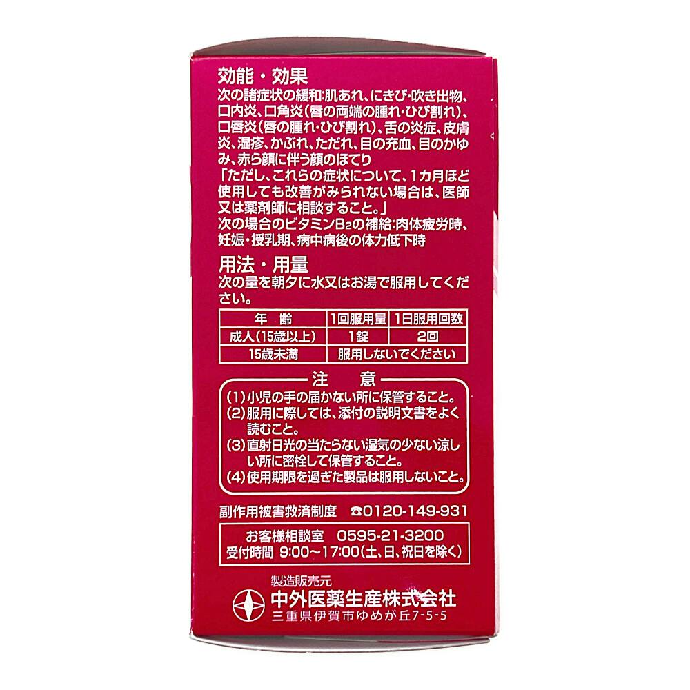 持続型ビタミンB2「リボフラビン酪酸エステル」をはじめ、ビタミ ンB6、ビタミンB1、ニコチン酸アミド、パントテン酸カルシウムの水溶性ビタミン群、さらに昔から生薬として肌あれに使われて いるヨクイニン「ハトムギ」のエキスを効率良く配合し体の内側から改善します