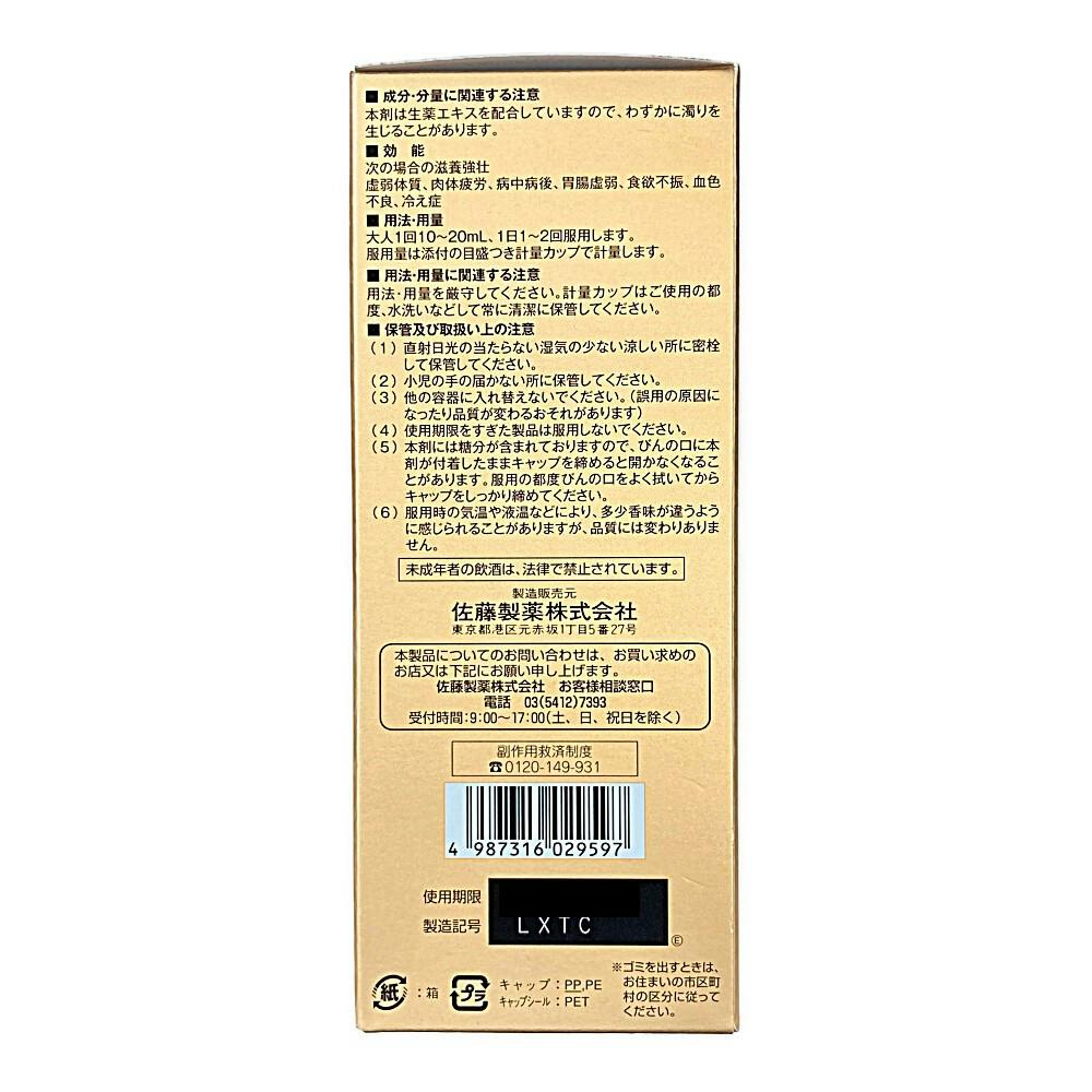 ●エレウテロコック根、オウセイ、ニンジンなど、10種類の生薬から得たエキスに、タウリンを配合した滋養強壮に効果をあらわす薬用酒です●冷え症、虚弱体質、肉体疲労などの場合の滋養強壮に効果をあらわします。