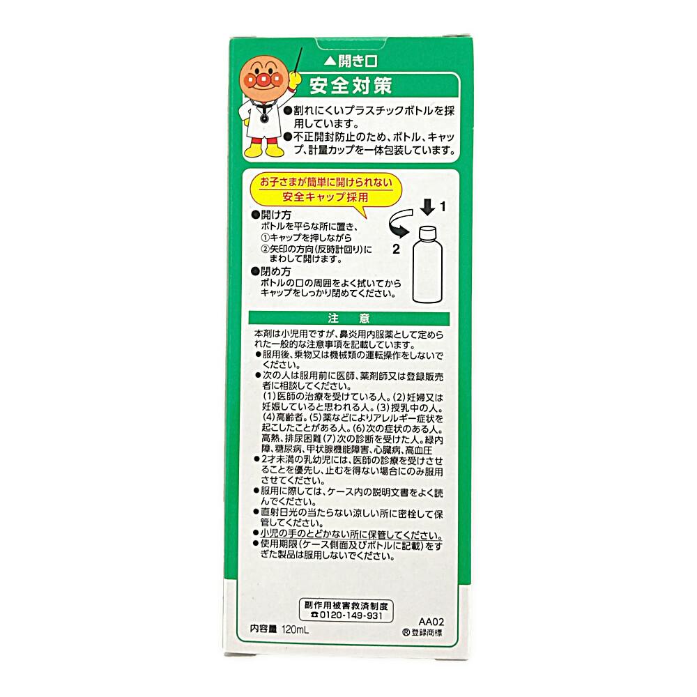 ●お子さまのこのような症状に/鼻みず・鼻づまり ●イチゴ味 ●割れにくいプラスティックボトルを採用しています ●不正開封防止のため、ボトル、キャップ、計量カップを一体包装しています ●お子さまが簡単に開けられない安全キャップ採用 など