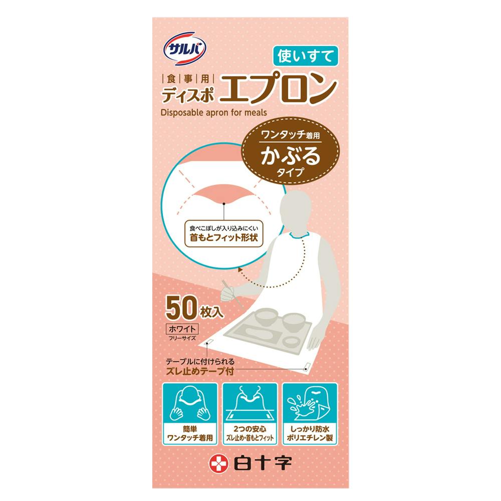 サルバ 食事用エプロン ホワイト フリーサイズ 50枚入