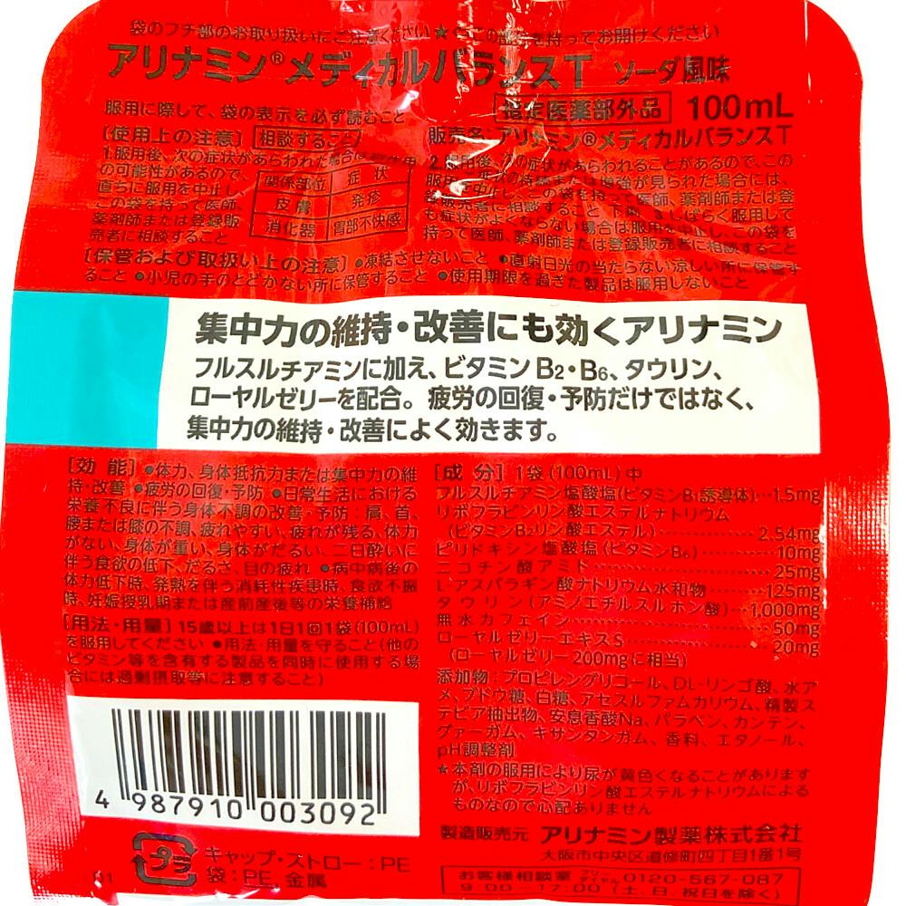 ●ソーダ風味●疲労回復・予防に●抗疲労成分フルスルチアミン●ビタミンB2・B6●タウリン●ローヤルゼリー●100mL●109kal/袋●指定医薬部外品