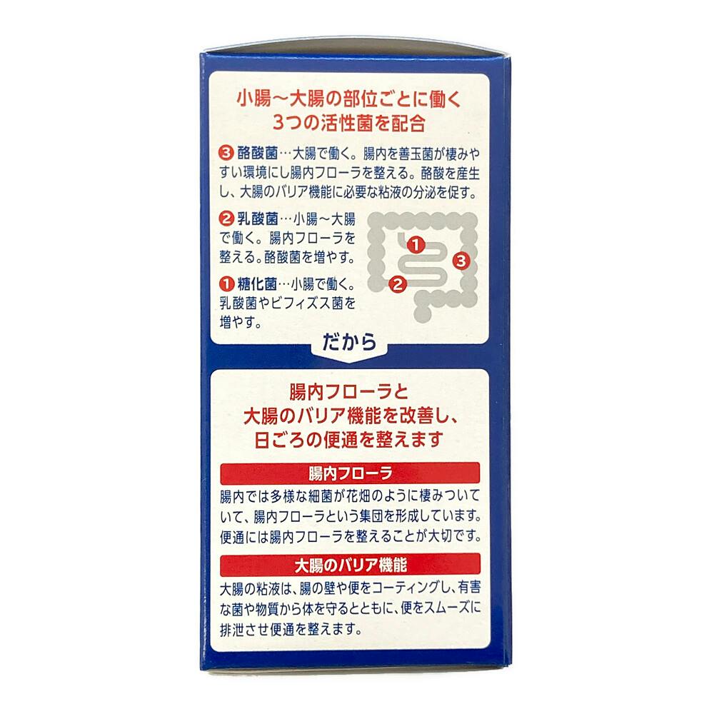 ●小腸~大腸の部位ごとに働く3つの活性菌を配合(酪酸菌、乳酸菌、糖化菌)●腸内フローラと大腸のバリア機能を改善し、日ごろの便通を整えます。●45日分