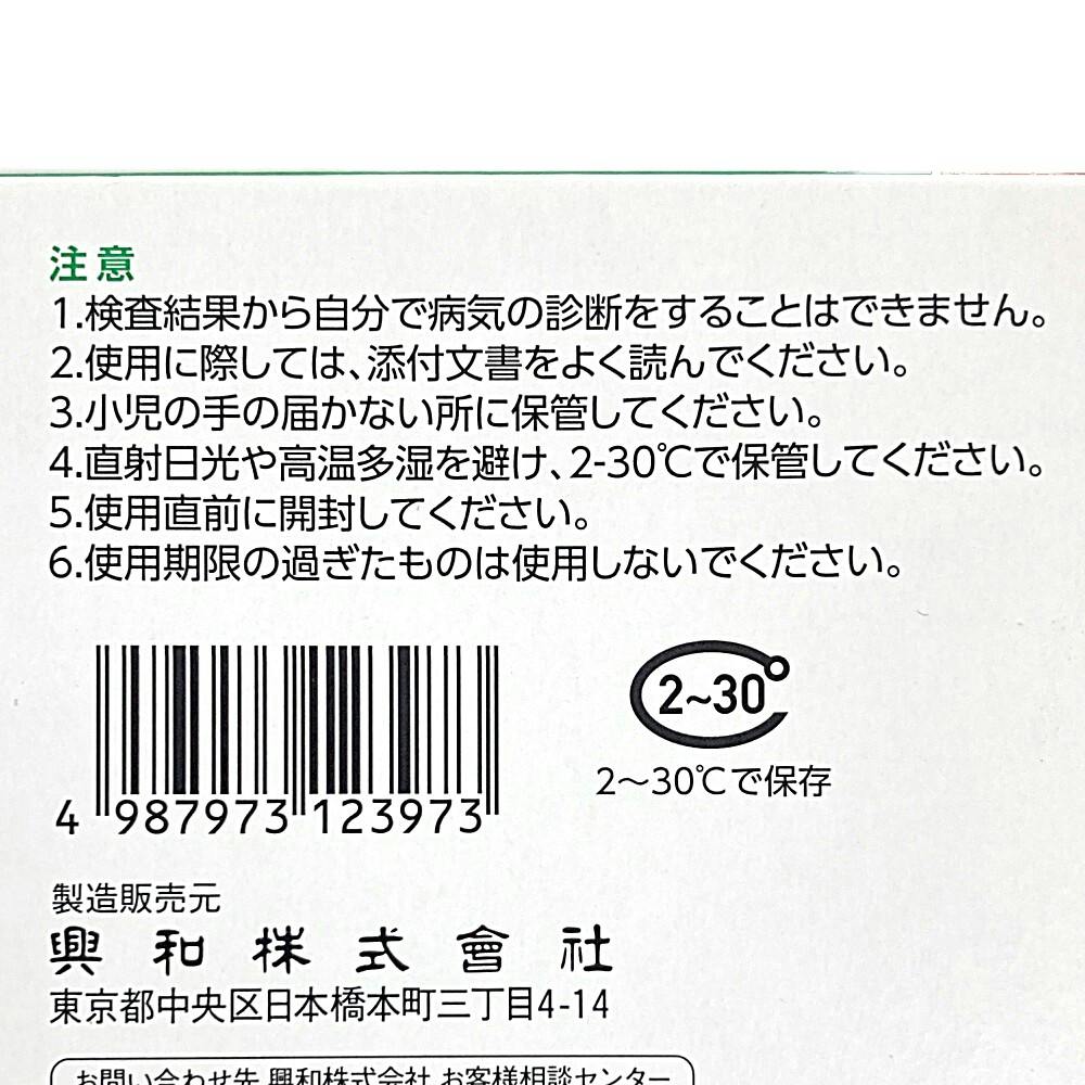 ●検査結果から自分で病気の診断をすることはできません。●使用に関しては添付文書をよく読んでください。●小児の手の届かない所に保管してください。●直射日光や高温多湿を避け、本品は2-30℃で保管してください。●使用直前に開封してください。など