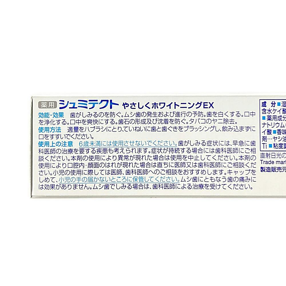●薬用高濃度フッ素配合(1450ppm) ●知覚過敏で歯がシミるのを防いで、ホワイトニング ●やさしくホワイトニングEX/着色汚れも歯垢もやさしく除去