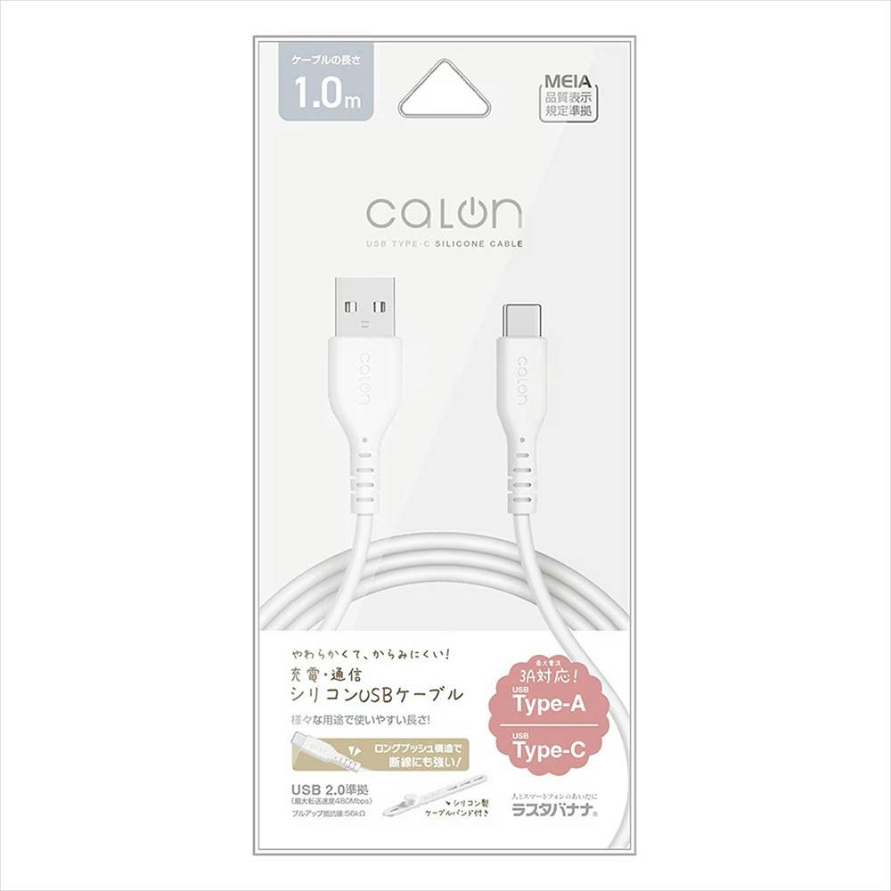 ラスタバナナ 柔らかシリコンケーブル 1.0m Type-A to Type-C calon ホワイト R10CAAC3A06WH