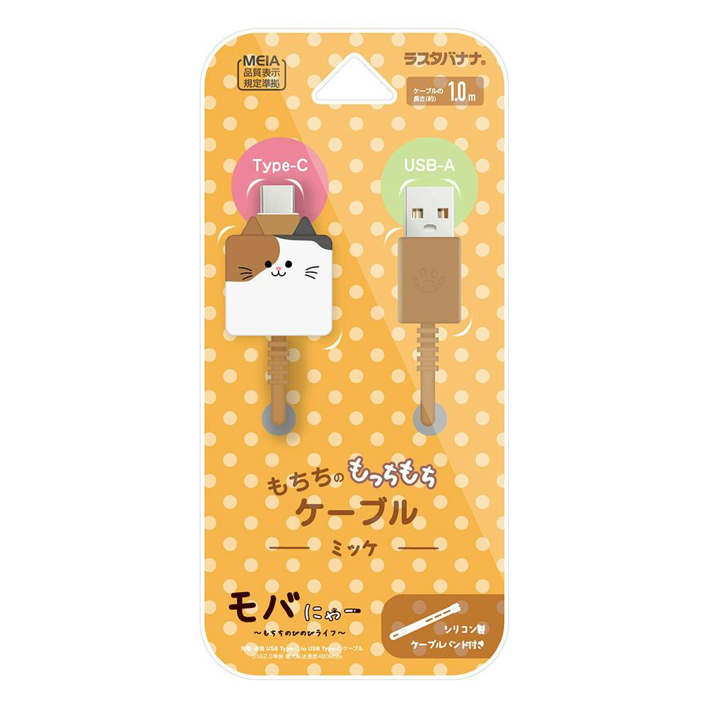 ラスタバナナ モバにゃー もちもちシリコンケーブル Type-A to Type-C 1m ミッケ