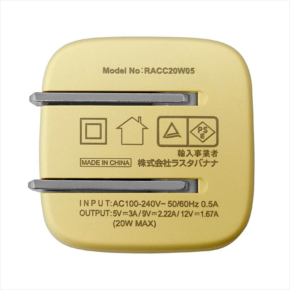 ラスタバナナ PD20W対応 TYPE-C 1ポート AC充電器 ライトイエロー RACC20W05LYL