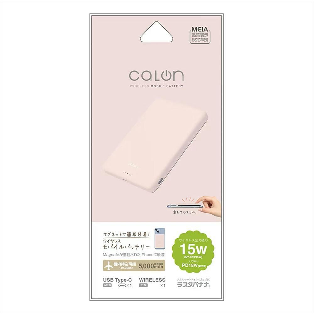 Type-C 1ポート 薄型マグネット付ワイヤレスモバイルバッテリー 5000mAh calon スモーキーピンク RLI050WCC15W01SPK