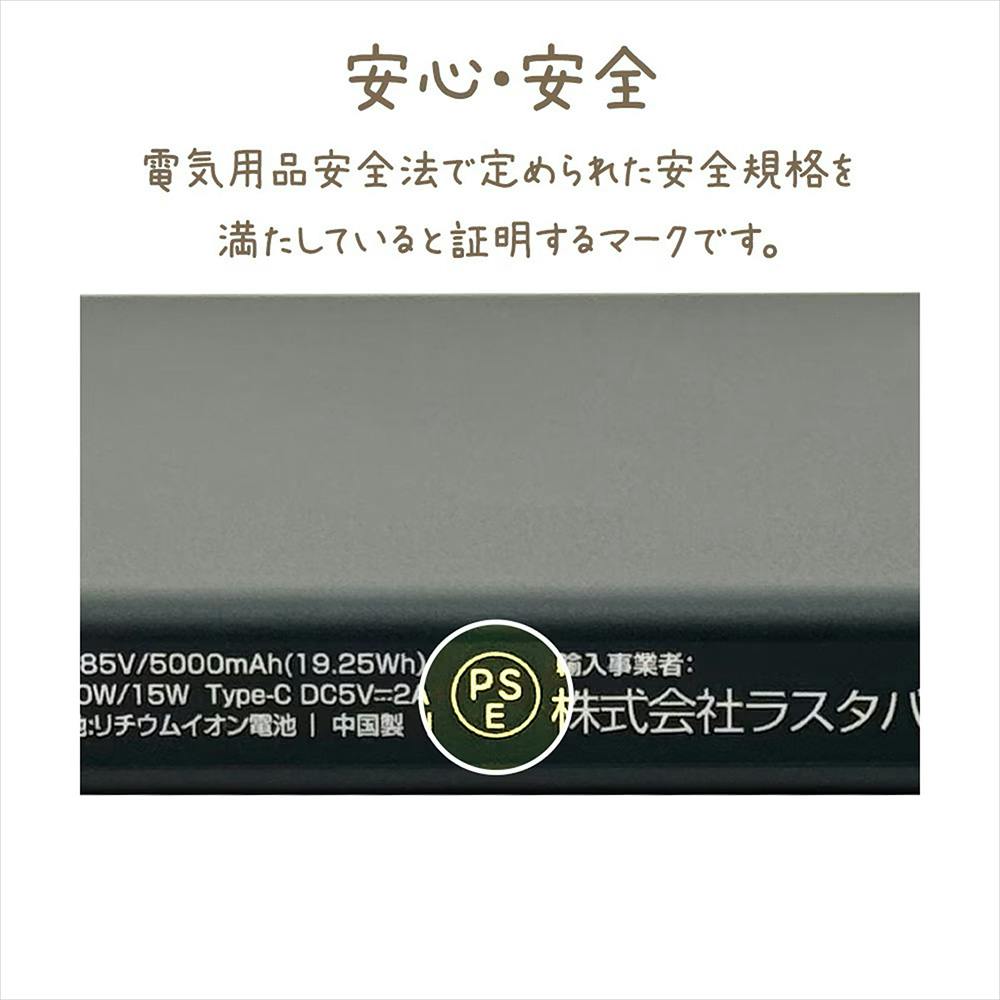 ワイヤレス充電機能(送電)と、Type-Cポート(入力/出力)を搭載したモバイルバッテリー