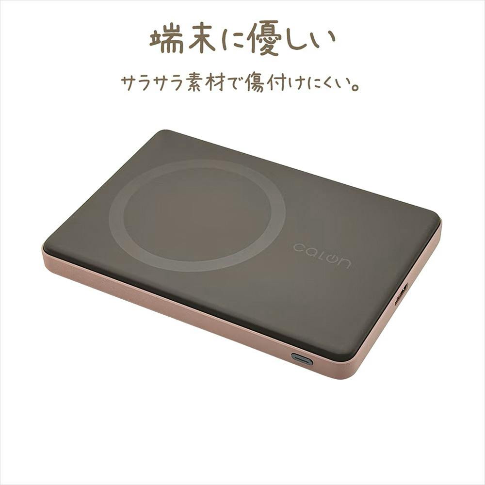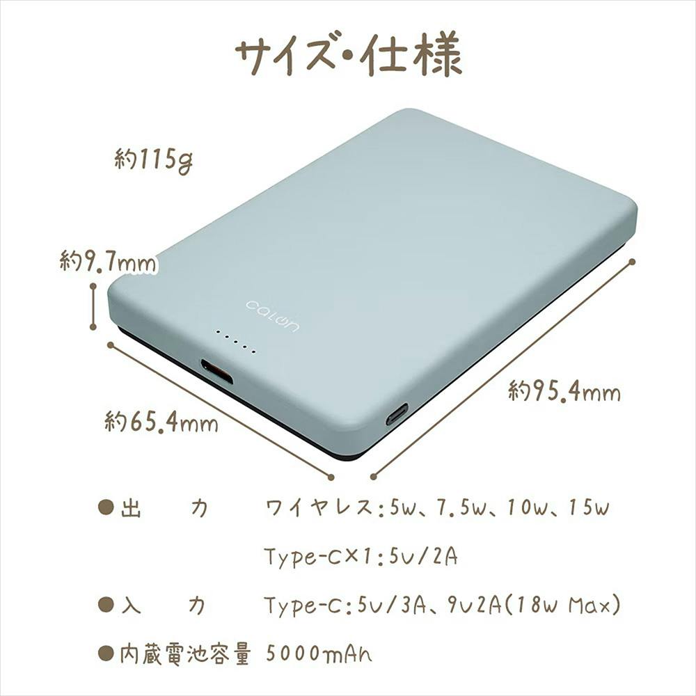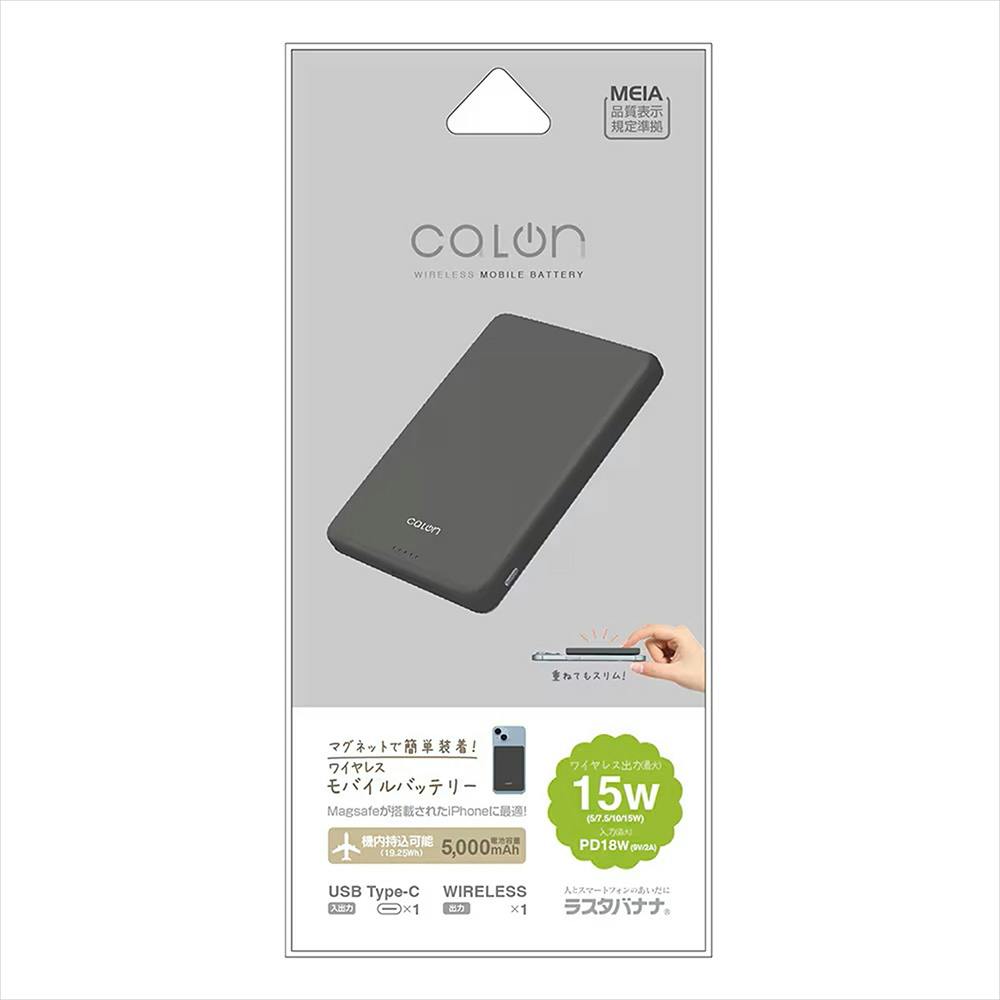 Type-C 1ポート 薄型マグネット付ワイヤレスモバイルバッテリー 5000mAh calon チャコールグレー RLI050WCC15W01CGRY