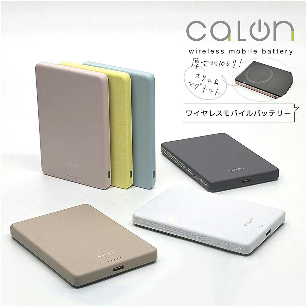 Type-C 1ポート 薄型マグネット付ワイヤレスモバイルバッテリー 5000mAh calon ライトイエロー RLI050WCC15W01LYL