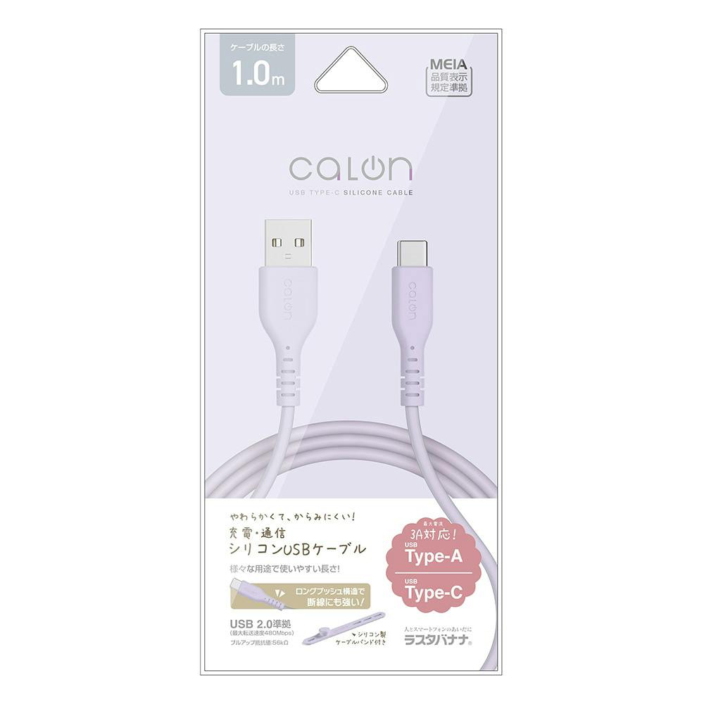 ラスタバナナ calon USB-A to Type-C 柔らかシリコンケーブル 1.0m ライトパープル