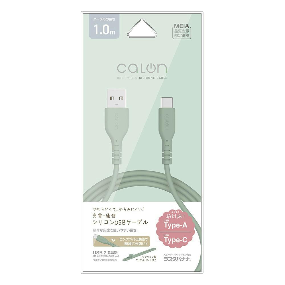 ラスタバナナ calon USB-A to Type-C 柔らかシリコンケーブル 1.0m スモーキーグリーン