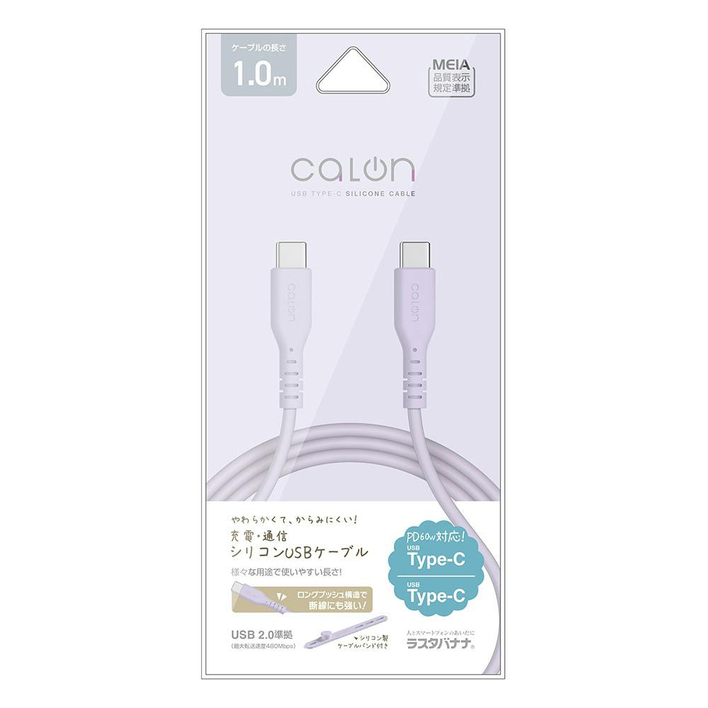 ラスタバナナ calon Type-C to Type-C 柔らかシリコンケーブル 1.0m ライトパープル