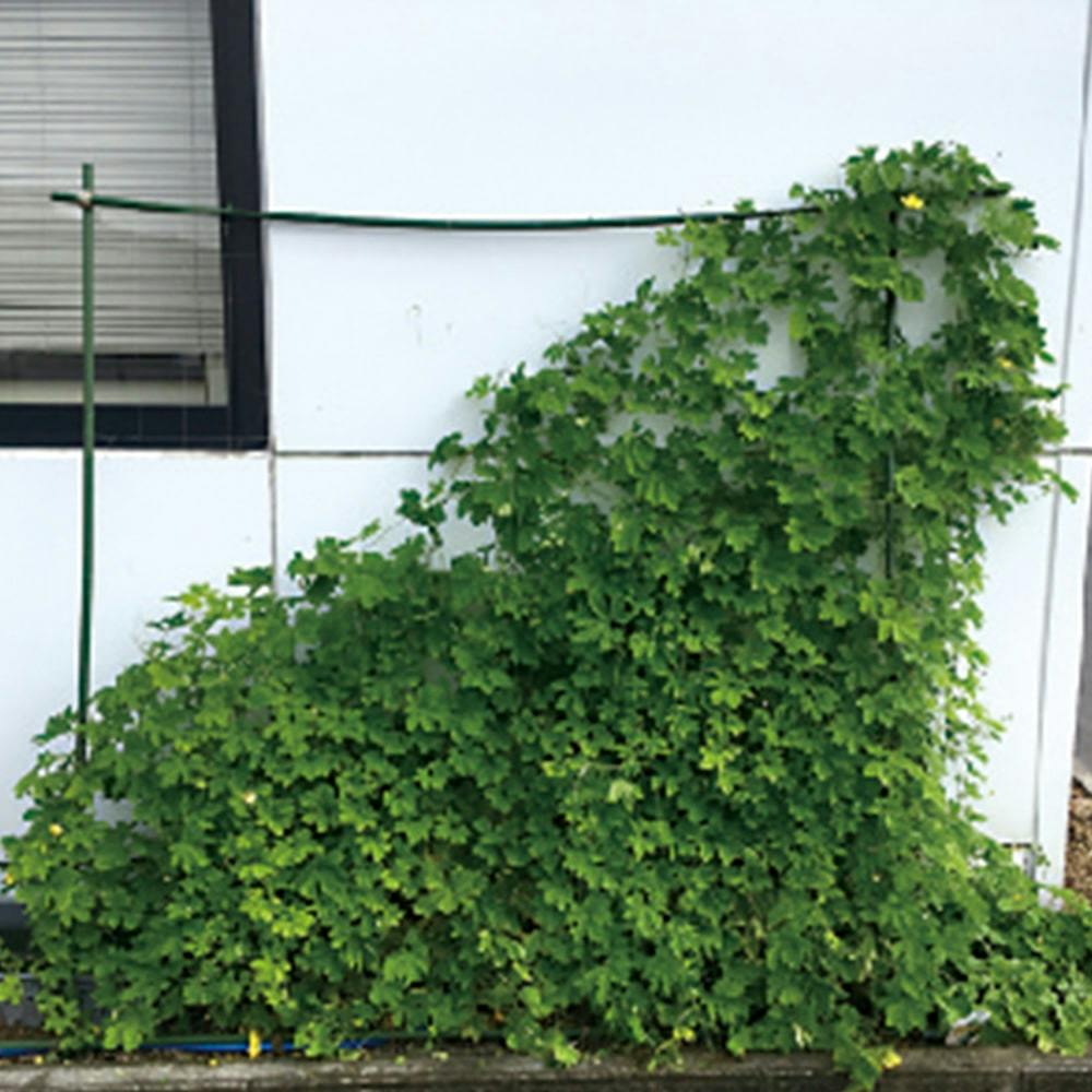 透明のつるものネットで景観を損なわずグリーンカーテンができる