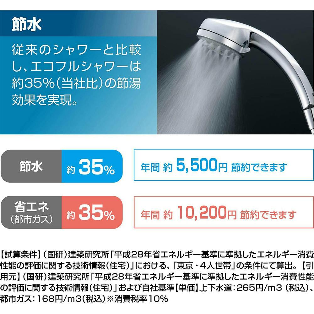 ●エコフルシャワー:羽根車の高速回転で勢いのあるシャワーを吐水、従来のシャワーと比較すると約35%(当社比)の節湯効果を実現しました。 ●多機能シャワー:エコフルスプレー吐水、マッサージ吐水、ミスト吐水の3種類の吐水種類が選べます。