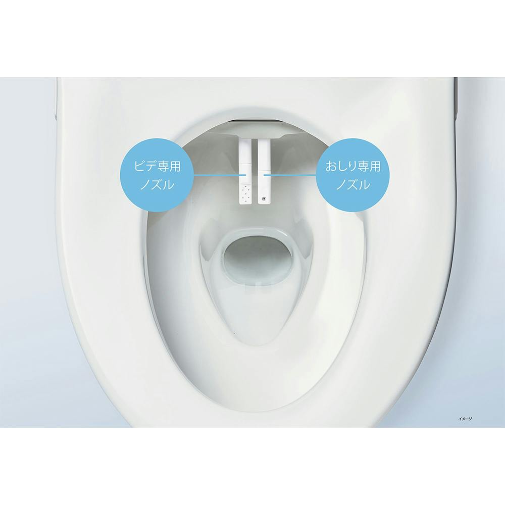 すっきりノズルシャッター、キレイ便座、ノズルオートクリーニング、おしりパワフル・マイルド洗浄、スーパーワイドビデ洗浄、おしりワイド洗浄、おしりマッサージ洗浄、女性にやさしいビデ専用ノズル、ビデ洗浄、Wパワー脱臭、ターボ脱臭、便座ヒーターオートオフ