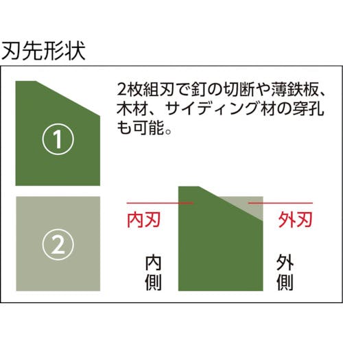 金属系サイディングボード、2×4(釘も切断)、木材、合板、塩ビ板、FRPなど。