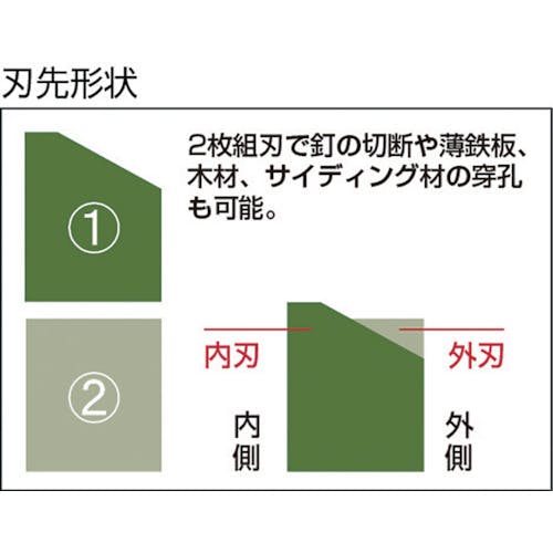 金属系サイディングボード、2×4(釘も切断)、木材、合板、塩ビ板、FRPなど。