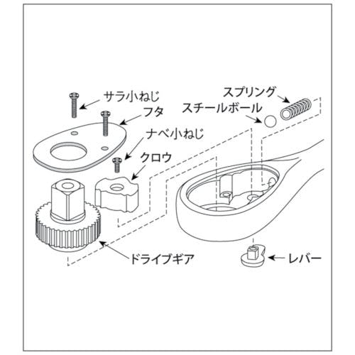 • 【CAINZ-DASH】京都機械工具 ラチェットハンドル用パーツ 9.5sq.ラチェットヘッドリペアキット BR3E-K【別送品】
