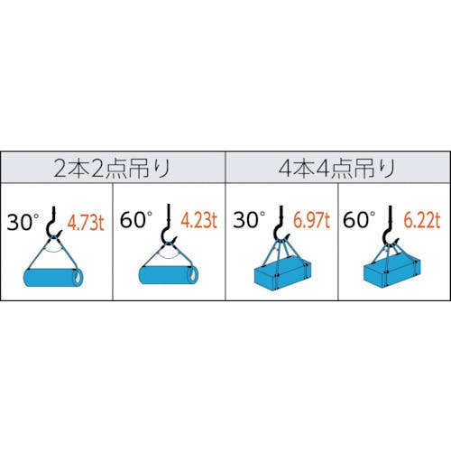 安全使用荷重2本垂直吊り(t)