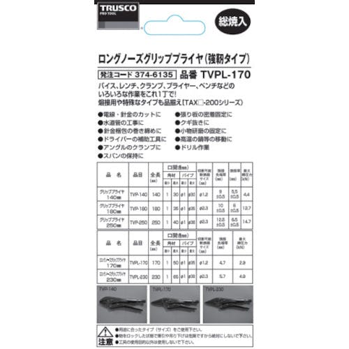 【CAINZ-DASH】トラスコ中山 ロングノーズグリッププライヤ170mm TVPL-170【別送品】