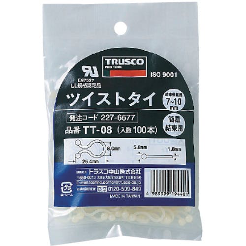 【CAINZ-DASH】トラスコ中山 ツイストタイ 結束可能径21.3mm~25.0mm 100個入 TT-24【別送品】