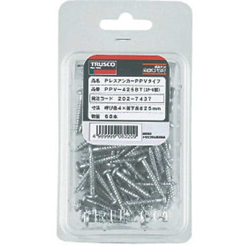 【CAINZ-DASH】トラスコ中山 Pレスアンカー ナベ頭 スチール 4X25 68本入 (コンクリート・ブロック・木材用/ねじ固定式 ) PPV-425BT【別送品】