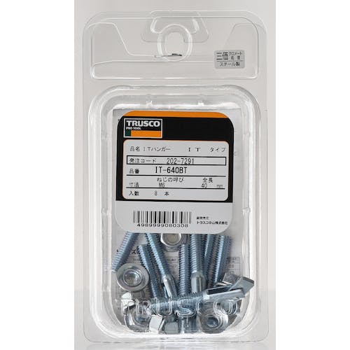 【CAINZ-DASH】トラスコ中山 ITハンガー スチール M6X40 8本入 (中空壁用アンカー/はさみ固定式 ) IT-640BT【別送品】