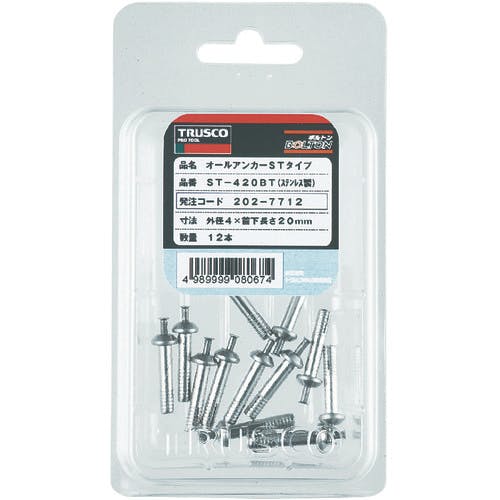 【CAINZ-DASH】トラスコ中山 オールアンカーSTタイプ ステンレス 4X20 12本入 (コンクリート用アンカー/芯棒打込み式) ST-420BT【別送品】