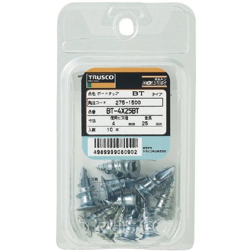 【CAINZ-DASH】トラスコ中山 ボードタップ 亜鉛合金ダイカスト製 4mm×長さ25mm 10本入 (中空壁用アンカー/ねじ込み式) BT-425BT【別送品】