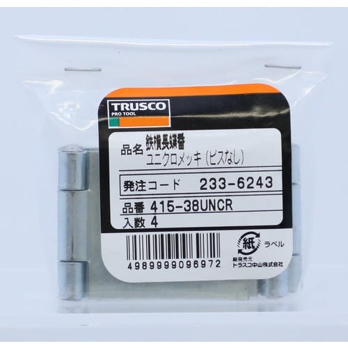 【CAINZ-DASH】トラスコ中山 スチール製横長蝶番 三価クロムメッキ仕上げ 全長38mm(4個入) 415-38UNCR【別送品】