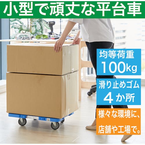 【CAINZ-DASH】トラスコ中山 樹脂製平台車 ルートバン 370X500 4輪自在 ストッパー付 青 MPB-500JS-B【別送品】