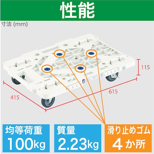 【CAINZ-DASH】トラスコ中山 樹脂製平台車 ルートバンメッシュタイプ 615X415 4輪自在 ストッパー付 白 MPK-600JS-W【別送品】