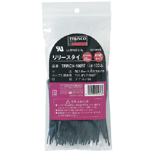 【CAINZ-DASH】トラスコ中山 リリースタイ 幅3.6mmX100mm 最大結束Φ25 耐候性 TRRCV-100W【別送品】