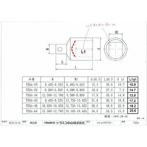 【CAINZ-DASH】トラスコ中山 ソケットアダプター 差込角凹12.7mm 凸9.5mm TSSA-43【別送品】