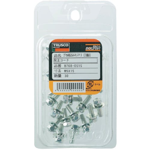 【CAINZ-DASH】トラスコ中山 十字穴付アプセット組込 P=3 三価白 M6×16 20本入 /(+)アプセットボルト ばね座金+JISワッシャー付き B768-0616【別送品】