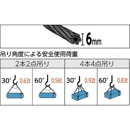 【CAINZ-DASH】トラスコ中山 玉掛けワイヤーロープ 段落し 6mmX6m TWD-6S6【別送品】