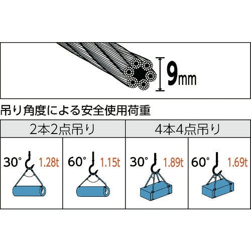 【CAINZ-DASH】トラスコ中山 玉掛けワイヤーロープ 段落し 9mmX2.5m TWD-9S2.5【別送品】