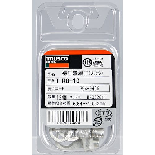【CAINZ-DASH】トラスコ中山 裸圧着端子丸形φ10.5長さ29.5 (12個入) T-R8-10【別送品】