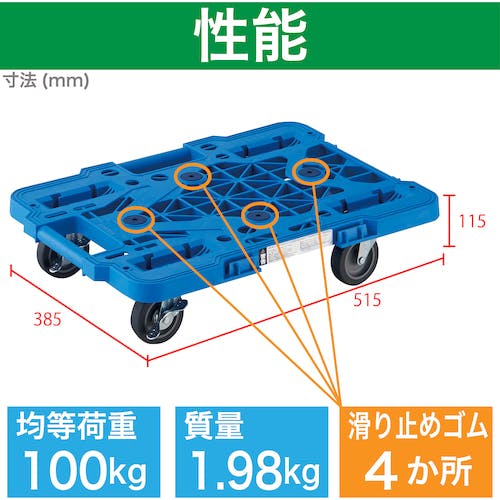 【CAINZ-DASH】トラスコ中山 樹脂製平台車 ルートバンメッシュタイプ 515X385 4輪自在 ストッパー付 青 MPK-500JS-B【別送品】