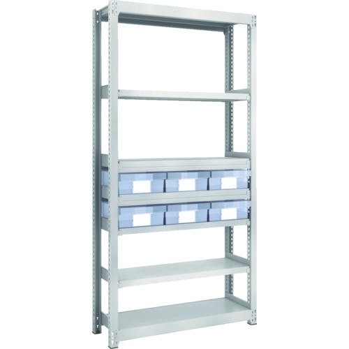 【CAINZ-DASH】トラスコ中山 スチール製軽中量ボルトレス棚 M2型 樹脂透明引出付 W860×D300×H1800 大×6 M2-6337-D6【別送品】