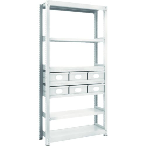 【CAINZ-DASH】トラスコ中山 スチール製軽中量ボルトレス棚 M2型 スチール引出付 W860×D300×H1800 大×6 M2-6337-B6【別送品】
