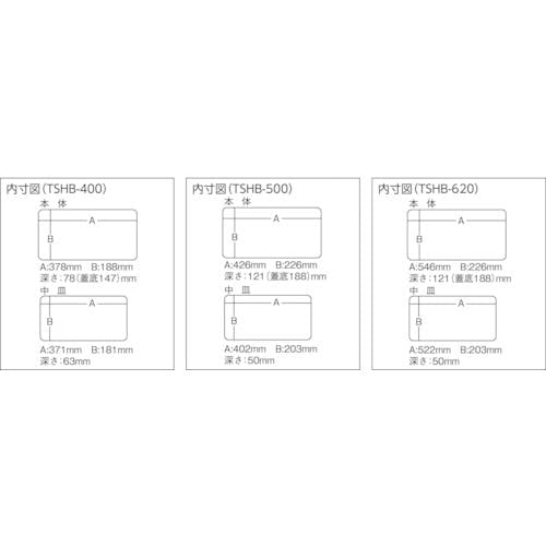 バックル・ハンドル:ABS樹脂(TSHB-500/620)、耐衝撃性コーポリマー(TSHB-400)