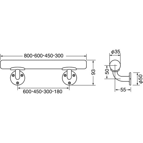【CAINZ-DASH】トラスコ中山 横型 ミニ手すり 35ΦX800 シルバ-ライトオ-ク HBIY800-SO【別送品】