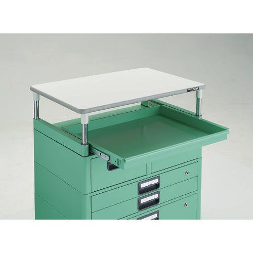 【CAINZ-DASH】トラスコ中山 ツールワゴン フェニックスワゴン 省音 750X500 H880 引出付 スライド1段 天板付 ヤンググリーン PEW-970M1VXWT-YG【別送品】