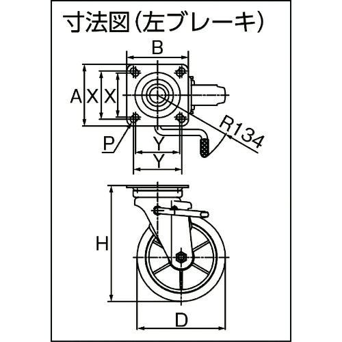 • 【CAINZ-DASH】トラスコ中山 プレス製ナイロンホイールゴムキャスター 自在 左ブレーキサインプレート150Φ TWRJB-150LSP【別送品】