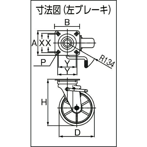 【CAINZ-DASH】トラスコ中山 プレス製ナイロンホイールウレタンキャスター 自在 左ブレーキサインプレート150Φ TWUJB-150LSP【別送品】