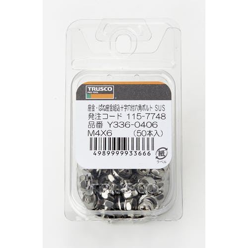 【CAINZ-DASH】トラスコ中山 十字穴付アプセット組込 P=3 ステンレス M4×6 50本入 /(+)アプセットボルト ばね座金+JISワッシャー付き Y336-0406【別送品】