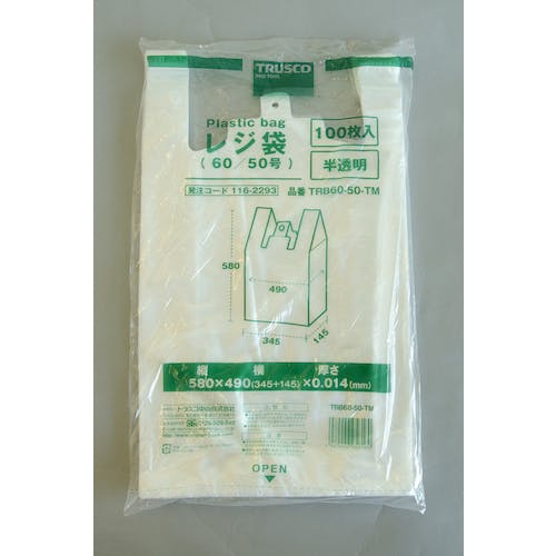 【CAINZ-DASH】トラスコ中山 レジ袋 60/50号 580X490(345)mm 半透明 100枚入 TRB60-50-TM【別送品】